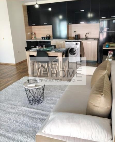 Представяме Ви, двустаен апартамент с площ 64 кв.м, разположен на четвърти етаж. Предлага се обзаведен и оборудван със съвременни мебели и електроуреди. Състои се от коридор, дневна с кухненска зона, спалня, баня с тоалет и тераса. Позволени са домашни любимци.